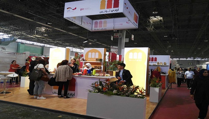 Dans le cadre de renforcement des capacités commerciales des promoteurs du programme Oasis Start’up accompagnés et appuyés par le Pole Djérid et la GIZ à travers son projet ISECO, deux femmes artisanes de la région de Tozeur ont pu exposer leurs produits de dérivés de dattes dans le « Stand Ayedi Touness » sponsorisé par la GIZ au foire du Kram et ce du 28 avril au 07 mai 2017.