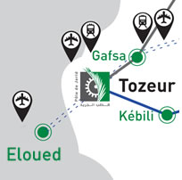 و يتوفر بهذا القطب الديموغرافي مطاران دوليان إثنان مطار توزر-نفطة و مطار قفصة-قصر إضافة إلى مطار وطني بالوادي علاوة على 3 محطات قطار